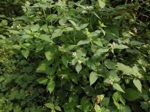 Описание. Медовник есть однолетнее травянистое растение из семейства губоцветных (Labitae Juss.), распространенное почти во всей Европе и обыкновенно почти во всей России. Стебель выс. 30–60 см, ветвистый, жестковолосый, под узлами утолщенный. Листья продолговато-яйцевидные, заостренные, крупно зубчатые, шершавые. Многочисленные цветы сидят густыми мутовками в углах верхних листьев. Чашечка трубчато-колокольчатая, с 10 жилками и 5 тонко-колючими зубцами. Венчик с расширенной у основания трубочкой, двугубый, беловатый или лиловый; верхняя губа вогнута в виде шлема, спереди зубчатая, нижняя 3-лопастная, с обратно-сердцевидной средней лопастью, при основании желтая, с пурпуровыми пятнами. Тычинок 4 двусильных, т. е. 2 боковые длиннее остальных; гнезда пыльников расходящиеся, раскрывающиеся каждое на 2 створки, из которых меньшая реснитчатая. Завязь окружена при основании подпестичным диском, 4-лопастная и 4-гнездная вследствие развития ложной перегородки, с одним яичком в каждом гнезде; из середины завязи выходит столбик, оканчивающийся двулопастным рыльцем. Плод распадается на 4 обратнояйцевидных, сжатых сверху округлых орешка. Цветет летом. Растет большей частью на опушке лесов и рощ, на полях, около дорог и на сорных местах.
