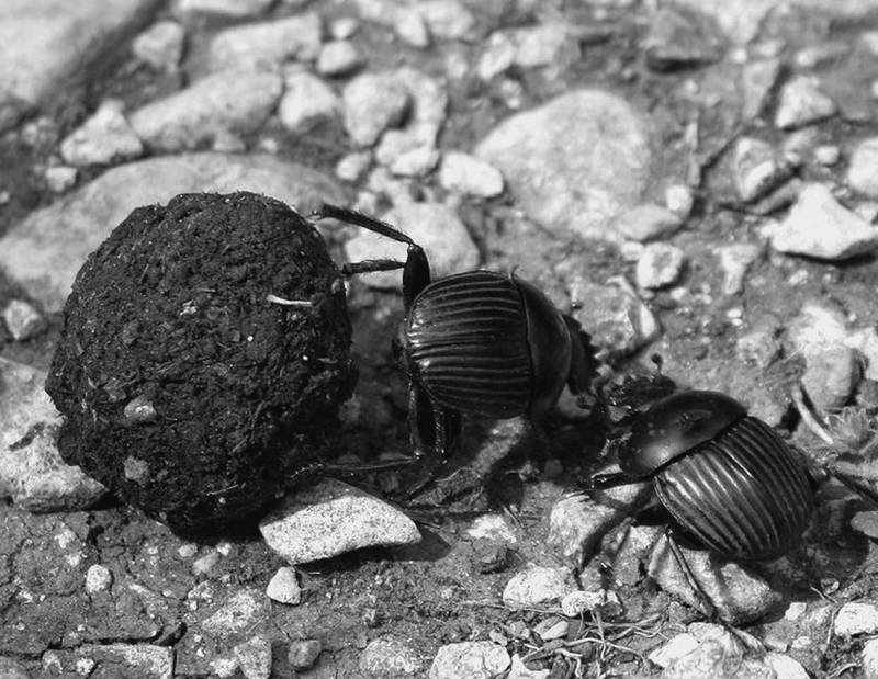 Когда развитие личинки подходит к концу и она готова приступить к окукливанию, мать обрабатывает поверхность шара особой смесью из своего помета, помета самца и личинок. А после того, как эта «штукатурка» высыхает, шар становится прочным и крепким, словно миниатюрная крепость.
