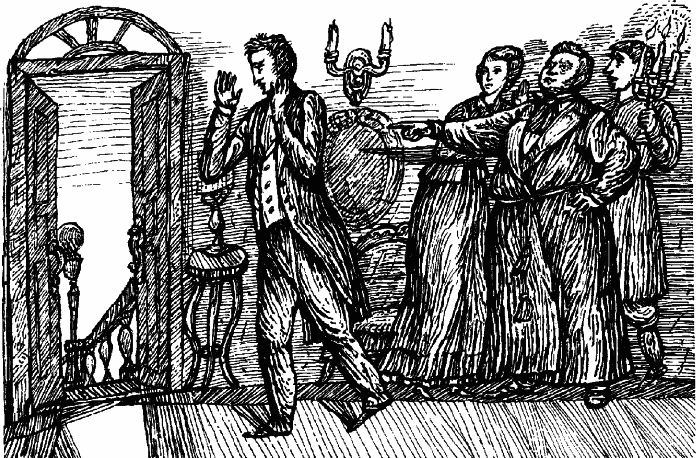 Множество гостей всякого разбора и их лакеев при разъезде.
