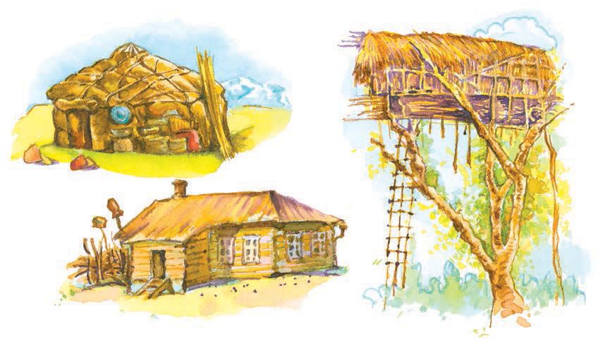 В лесной полосе дома делали из дерева. Там, где леса не было, дома строили из глины, камня, кирпича. В местах с жарким климатом для строительства использовались солома и кора дерева, в холодном климате – кости больших животных или стволы деревьев, служившие каркасом. Каркас сверху покрывали шкурами животных. Кочевники жили в юртах*. Их можно быстро и легко собрать и разобрать, перевезти с одного места на другое.