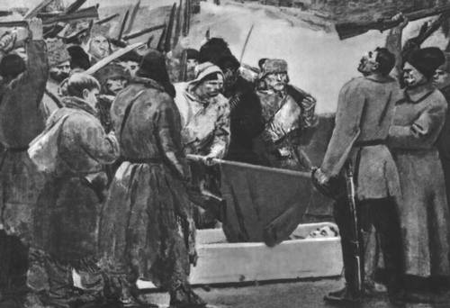 С. В. Герасимов. «Пошли». Иллюстрация к поэме Н. А. Некрасова «Кому на Руси жить хорошо». Чёрная акварель. 1933—35. Третьяковская галерея. Москва.