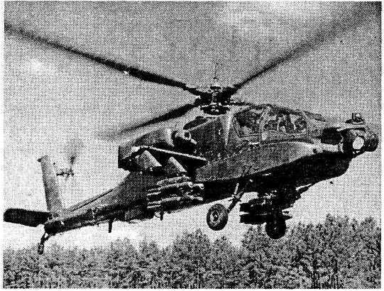 Первый серийный вертолет Хьюз-77 (армейское обозначение АН-64А «Апач») был собран в сентябре 1983 г., а в феврале 1984 г. вертолет начал поступать на вооружение. АН-64А является вертолетом нового поколения. Сочетание высокой скорости и скороподъемности (14,6 м/с) обеспечило маневренность машине, конструкция которой рассчитана на диапазон перегрузок от —1,5 до +3,5.