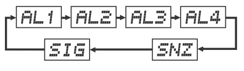 ? SNZ (сигнал с повтором) ? SIG (индикация начала часа).