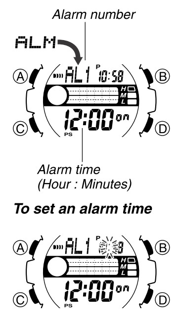 Цифровое значение в разряде часов начнет мигать, так как оно выбрано для установки. В этот момент будильник автоматически включается.