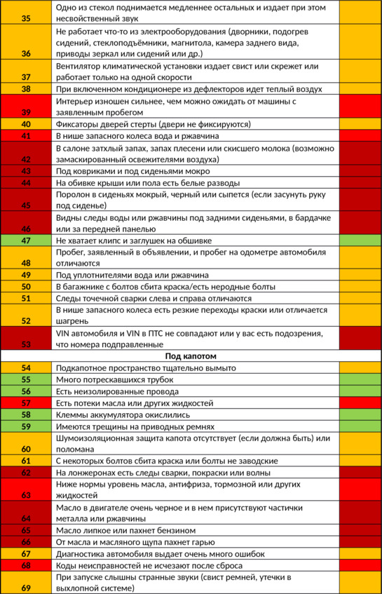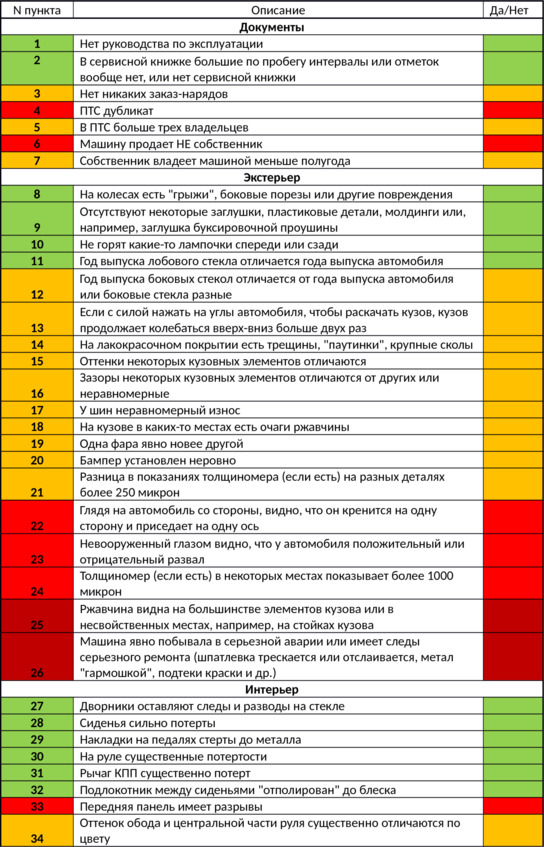 Чек-лист для экспресс-оценки автомобиля