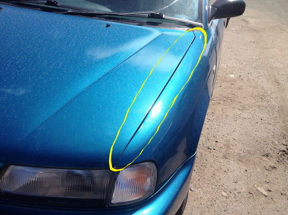 Зазора между крылом и капотом около фары почти нет. Детали чуть ли не внахлест. С другой стороны зазор более или менее равномерный (на фото не видно). Капот явно неродной.