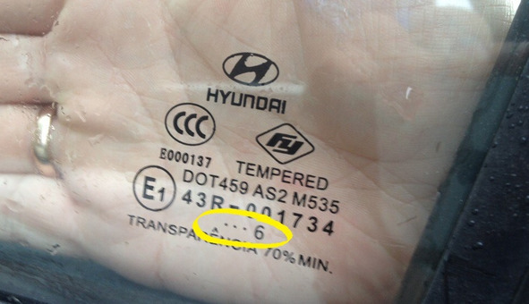 Кстати, дата производства автомобиля и стекла может чуть-чуть отличаться. Например, стекло может быть выпущено в ноябре 2011 года, а машина в феврале 2012. В этом нет ничего страшного. Логистика и не более того. Может быть, что одно стекло выпущено в июле, а другое в августе – это тоже не говорит ни о чем плохом.