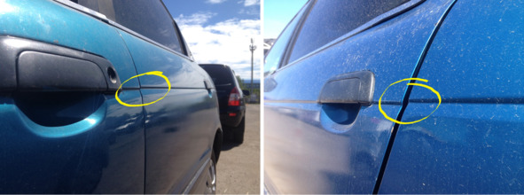 Как видим, выштамповки не совпадают друг с другом. Причем ни спереди, ни сзади. Очевидно, снимались двери. Или ставились новые.