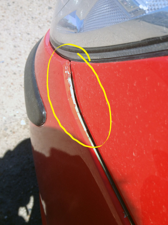 Бампер выступает за кузов, плюс видно, как «криво» он покрашен. С качественным ремонтом не заморачивались.