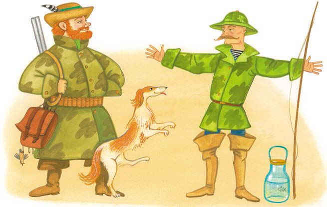 4. Прочитайте текст по ролям. Разыграйте сценку. Для создания характеров рыбака и охотника используйте жесты, интонацию и темп речи.