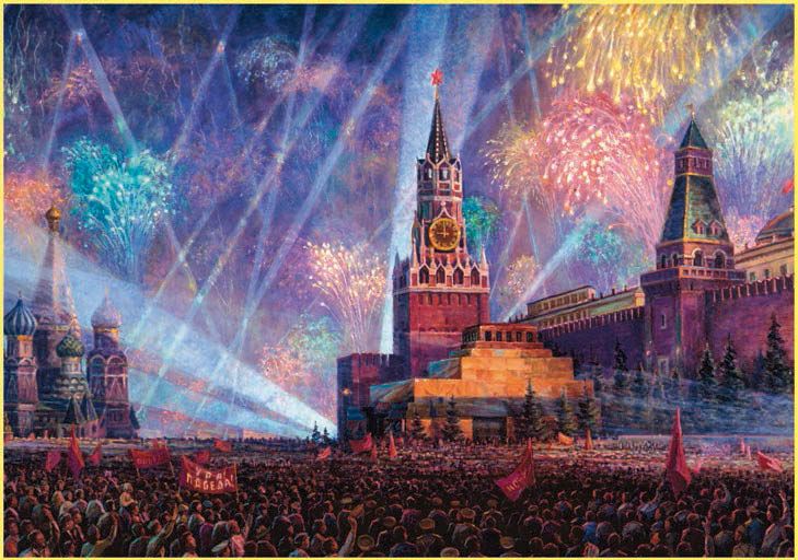 Один из самых любимых праздников в нашей стране – это 9 Мая, или День Победы. В 1945 году Советский Союз одержал победу над фашистской Германией. Долгих 4 года длилась эта тяжёлая война. Много было погибших и раненых. Разрушены города и сёла, уничтожены многие произведения искусства. Каждый год на Красной площади в Москве проходит Парад Победы.