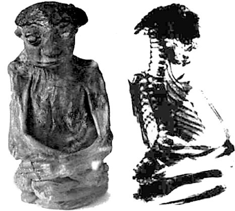 Хорошо сохранившуюся мумию «неандертальца», вмерзшую в глыбу льда, показывали когда-то на ярмарках, но ученые не успели исследовать его останки – замороженный уродец пропал. В России одна женщина якобы нашла крошечную мумию «инопланетянина» – останки малорослого человекообразного существа, не похожего на маленького ребенка, лилипута или карлика. Удивительную миниатюрную мумию открыли также в Перу: строение скелета и другие особенности мумии действительно наводят на мысль, что это не было земное существо.
