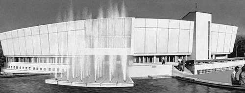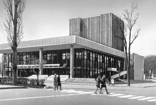 Фрунзе. Здание Киргизского академического драматического театра. 1970. Архитекторы Ф. М. Евсеев, М. Г. Евсеева, инженеры В. В. Жаркова, А. А. Антонова.