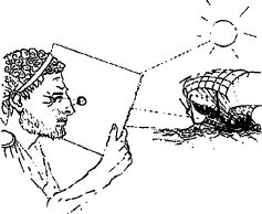 Но наиболее яркое применение такой технологии мы встречаем у Архимеда с его гигантскими зеркалами. Нет необходимости напоминать здесь обо всем научном вкладе этого гения, родившегося в Сиракузах и жившего с 287 по 212 г. до н.э. Однако обязательно нужно сказать, что во время осады Сиракуз в 212 г. римским флотом Клавдия Марцела Архимед сумел поджечь римские триеры, сфокусировав и направив на них солнечные лучи при помощи огромных, предположительно металлических зеркал.