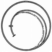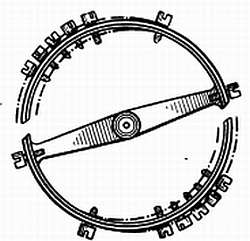 Простой металлический баланс (под словом «простой» автор подразумевает неразрезной монометаллический баланс) или баланс из латуни и стали также расширяется в условиях высокой температуры. Но все же потеря упругости спирали является главной причиной ошибки. Латунь имеет более высокий коэффициент расширения, чем сталь. Когда она сплавлена со сталью или присоединяется частичным сплавлением к стали и баланс разрезается, как показано на фиг. 142, под действием тепла концы дуг баланса загибаются внутрь, что приводит к опережению.
