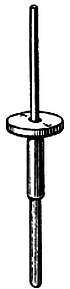 Когда вся указанная подгонка произведена, спираль можно заштифтовывать в колонке. Вынув баланс из механизма, снимают спираль с баланса. Изготовляют такой же штифт, как для заштифтовки в колодке, но только в этом случае штифт длиннее (фиг. 191).
