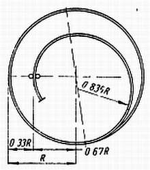 Позиционная регулировка центробежной силой мало практикуется в настоящее время, и может быть использована только для разрезного баланса. Если в каждой дуге обода баланса высверлить по одному отверстию для винтов 1, это ослабит обод баланса в указанных точках и центробежная сила заставит баланс открыться еще больше. На фиг. 201 показано пунктирными линиями смещение дуг во время больших размахов под воздействием центробежной силы. Следовательно, часы станут отставать.