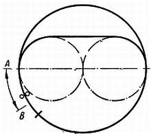 Рассмотрим конкретный случай: часы испытывают в положении циферблатом вверх и суточная ошибка составит +5 сек. Затем часы ставят заводной головкой вверх. Если в этом положении наблюдается отставание на 30 сек, следует вскрыть часы, ослабить заводную пружину и остановить баланс. Проверяют положение заштифтовки спирали. В этом случае нельзя провести такую линию, о которой говорилось в связи с правильной точкой заштифтовки, но можно рассмотреть точку, из которой должна выходить спираль, как показано на фиг. 194. Сместив точку заштифтовки, следует вновь проверить часы в указанном отношении.