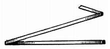 На фиг. 188 показан изгиб вниз. А — первый изгиб вверх, В — точка, где производится изгибание вниз. При изгибании спирали любым из двух последних указанных способов следует соблюдать большую осторожность, так как можно поломать спираль. Изгиб острый и в последнем случае высота или ширина спирали изгибается по очень короткой дуге. Вероятность излома мягкой спирали меньше.