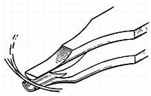 Фиг. 184. Изгиб концевой кривой вниз при помощи специального пинцета.