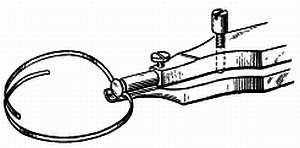 Вторым способом можно пользоваться для изготовления концевой кривой стальной спирали. В этом случае пользуются пинцетом, показанным на фиг. 185.