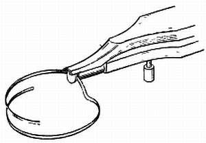 На кончике пинцета имеется латунный штифт или штифт из слоновой кости. Угол изгиба зависит от диаметра этого штифта. Если диаметр штифта достаточно большой, угол получается менее острым, если диаметр штифта меньше — угол изгиба острее; угол изгиба спирали определяется также приложенным усилием.