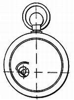 Проведите воображаемую линию, проходящую через заводную головку и деление 6 часов. Затем через камневое отверстие моста баланса проведите линию под прямым углом к первой линии. Спираль баланса должна отходить вверх от этой последней линии (фиг. 193).