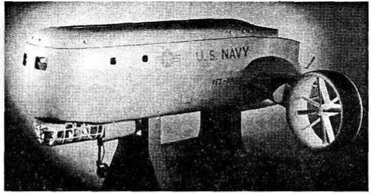 По одному из предложенных проектов воздухоплавательный аппарат может иметь атомную силовую установку, длину корпуса примерно 300 м, диаметр 75 м. Несмотря на то что его объем составит свыше 700 тыс. м3, он сможет летать со скоростью 100 узлов при мощности двигателей не более 25 тыс. л.с. В движение этот дирижабль будут приводить большие медленно вращающиеся хвостовые соосные воздушные винты противоположного вращения.