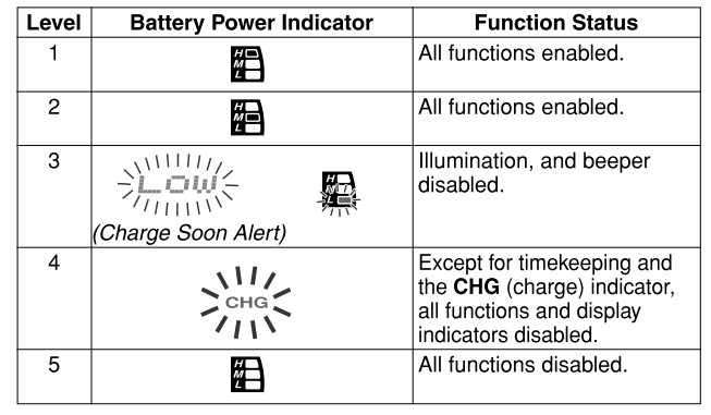 4 CHG Элемент питания полностью разряжен, тем не менее, измерение текущего времени продолжается