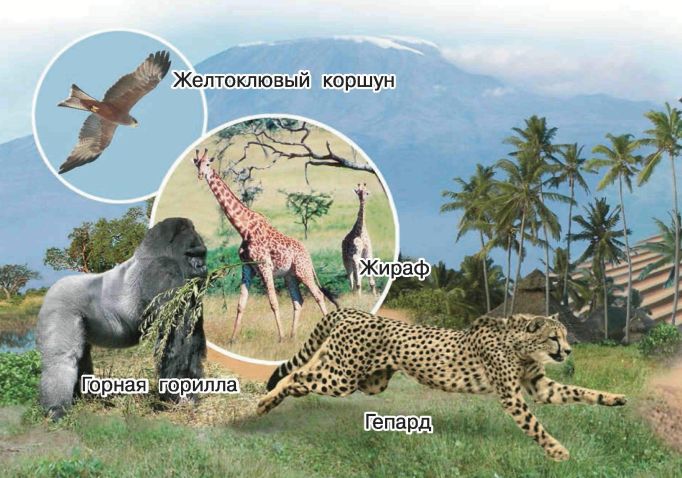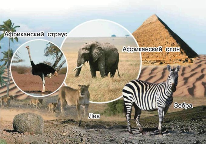 Нигде в мире нет такого многообразия крупных животных, как в африканской саванне. Здесь обитают дикие буйволы, зебры, разнообразные антилопы, жирафы, носороги и самые крупные из сухопутных животных на Земле – африканские слоны. Их вес может достигать 4–5 тонн. Много и хищных львов, леопардов, гепардов, шакалов. Из крупных птиц водятся орлы и африканские страусы.