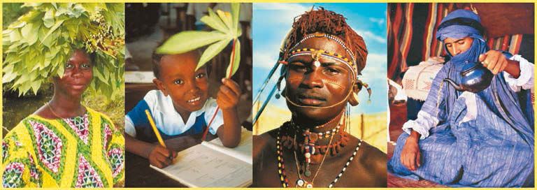 Населяют Африку многочисленные народы с тёмным цветом кожи и курчавыми волосами. Только на севере и северо-востоке проживают более светлокожие арабы и бербе?ры. Дело в том, что чёрный цвет кожи и курчавые волосы предохраняют жителей Африки от солнечных лучей и перегревания.