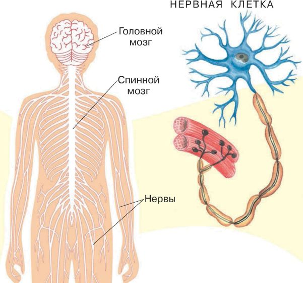 Головной и спинной мозг, нервы образуют нервную систему, которая руководит работой нашего организма.