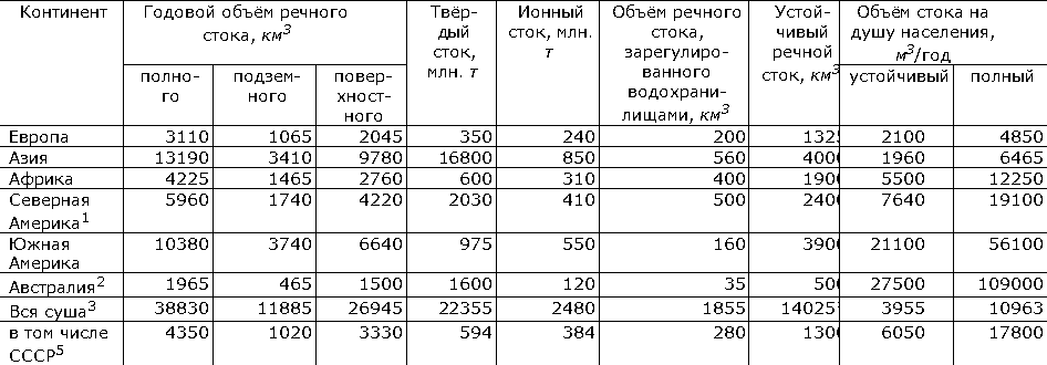 Табл. 2. — Речные водные ресурсы, твёрдый и ионный сток рек континентов и СССР