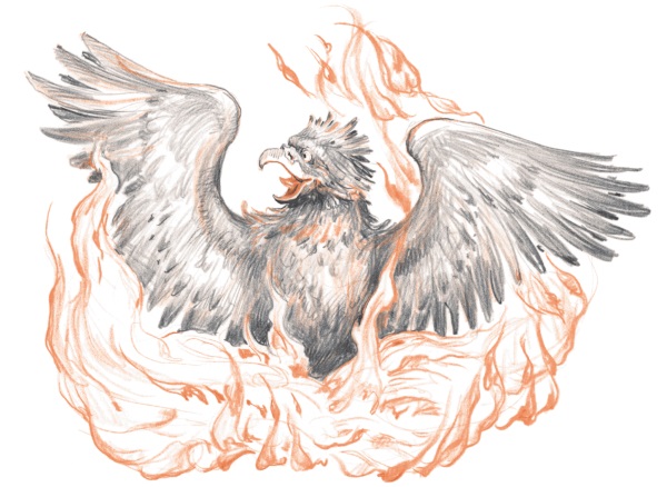 Сие есть птица, в Аравийских краях живущая, коя название свое с того получила, что перья у нее цвета финикийского пурпура, финикиянами в городе Тире из раковин добываемого. Един лишь единый феникс на свете живет, а живет он пятьсот лет, после чего, когда уж старость ему доле жить не дозволяет, возводит он себе из мирры, фимиама и корицы костер, садится на него и крылами столь могуче полощет, что костер тот от солнца занимается. Феникс ему еще крыльев маханием жару додает и от того в огне погибает. Однако же чрез девять дней из пепла взлетает – ибо из его сожженного праха рождается червь, а из червя, яко бабочка из гусеницы, обновленный и молодой феникс восстает.