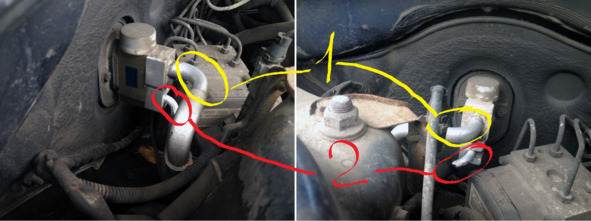 1 – магистраль низкого давления, трубка большего диаметра, она должна быть очень холодной, ледяной.