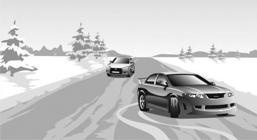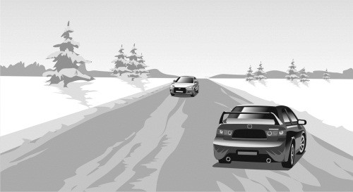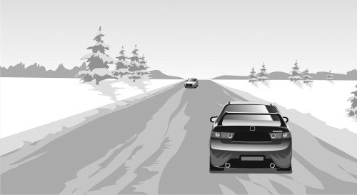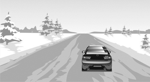 Легковой автомобиль двигался по скользкой зимней загородной дороге (илл. 1). Увидев встречную машину (илл. 2) и опасаясь лобового столкновения, водитель решил снизить скорость и несколько сместиться правее. Для этого он повернул руль вправо и отпустил педаль газа. В результате этих действий машину занесло и развернуло на дороге (илл. 3–4).