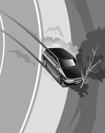 В-третьих, после начала заноса водитель не предпринял мер для его прекращения. Ему следовало как можно быстрее повернуть руль до упора в сторону заноса, после чего так же быстро поставить его в положение «прямо». Тогда бы автомобиль скорее всего стабилизировался.