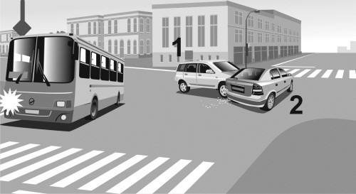 Водитель автомобиля 1 аналогично мог предположить, что за автобусом движется другой автомобиль, водитель которого может нарушить правила и въехать на перекресток, не уступив дорогу.