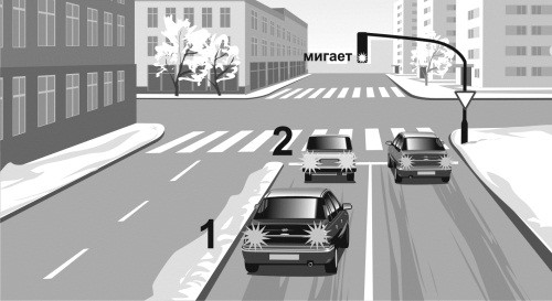 Если вы заканчиваете проезд перекрестка на мигающий зеленый свет, то будьте готовы к появлению на пути автомобиля, водитель которого начал движение на только что загоревшийся для него зеленый сигнал.