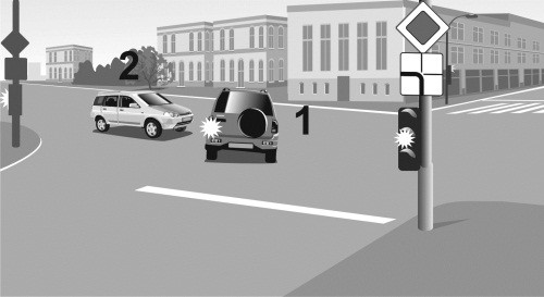 Очевидно, главным виновником этого ДТП был водитель 1, который нарушил п. 13.5 Правил. Поскольку зеленая стрелка загорелась одновременно с красным сигналом в основной секции светофора, то водитель должен был уступить дорогу машинам, движущимся с других направлений, в том числе и автомобилю 2. Однако он, видимо, решил, что если у него «зеленый», то ехать может только он. И поэтому даже не стал обращать особого внимания на то, что другая машина могла двигаться в перпендикулярном направлении на разрешающий сигнал светофора в основной секции. И снова мы с вами видим, как эгоизм за рулем привел к нарушению и нежелательным последствиям.