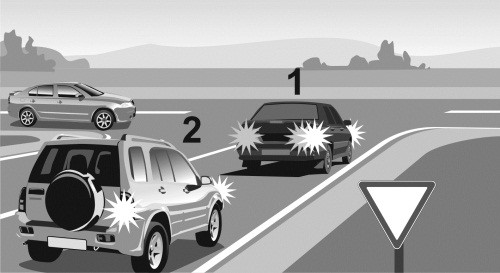 Водитель 1 выполнил требования Правил, но попал в ДТП. В данном случае он нарушил неписаное правило безопасного вождения – не контролировал ситуацию сзади своей машины. Другими словами, было нарушено четвертое условие активной безопасности. Если бы он вовремя оценил ситуацию и заблаговременно начал снижать скорость перед перекрестком, вынуждая тем самым плавно притормаживать водителя 2, то оба они проехали бы через перекресток без столкновения.