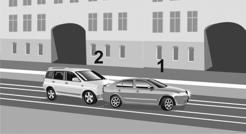 Такая ситуация, впрочем, как и предыдущая, встречается на дорогах сплошь и рядом. Я имею в виду не ДТП, а расположение автомобилей на дороге, которое в наших примерах привело к ДТП.
