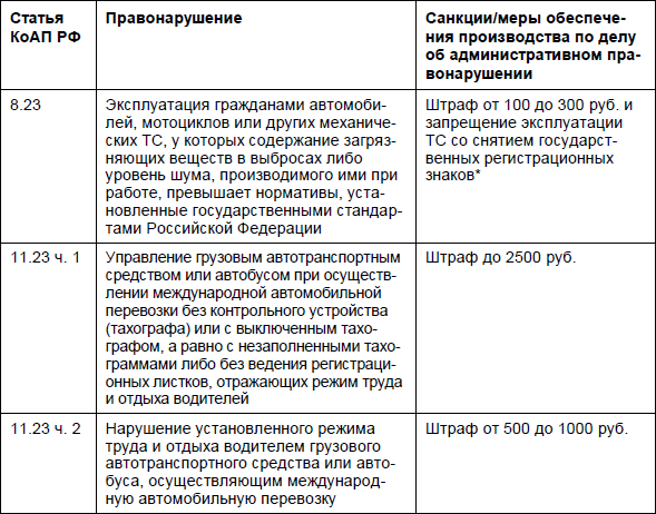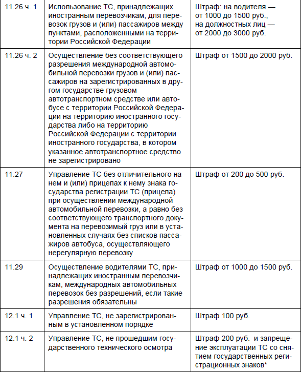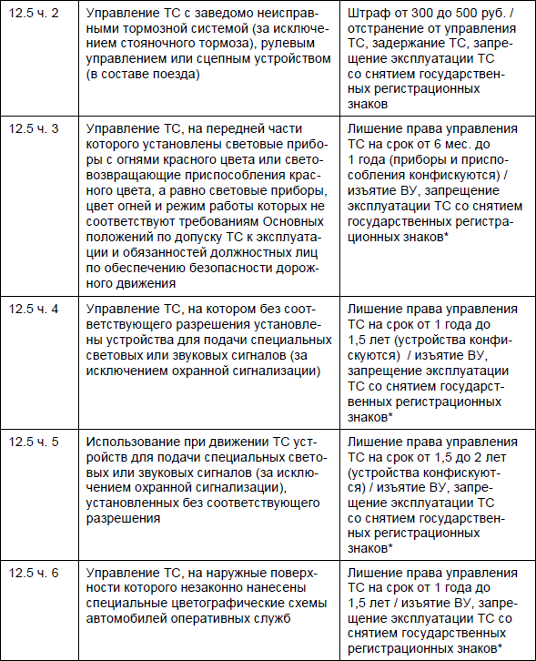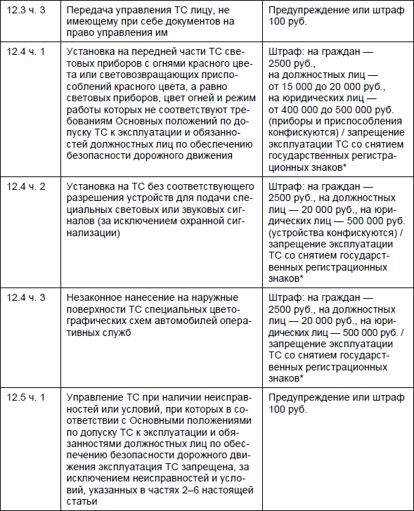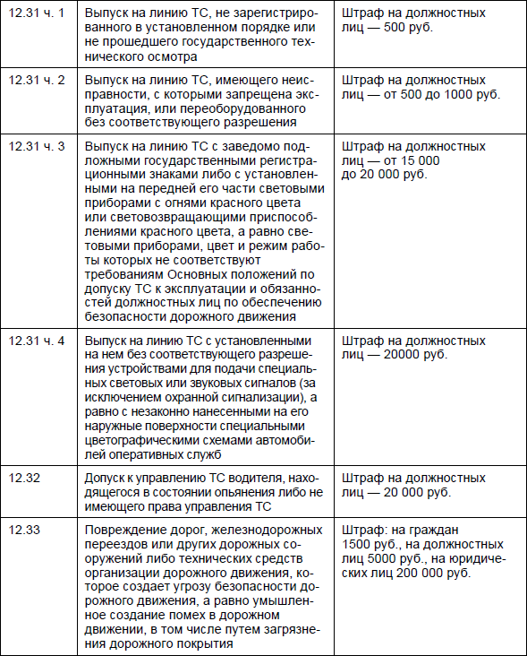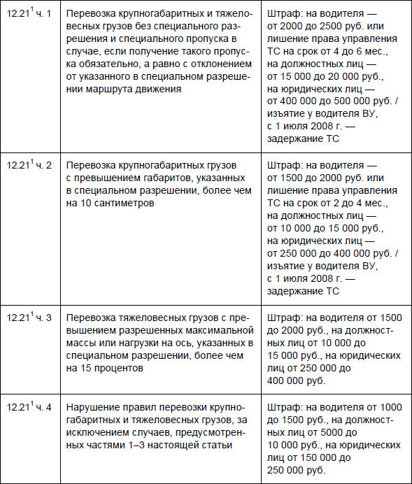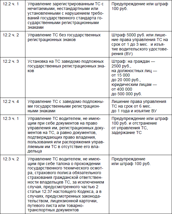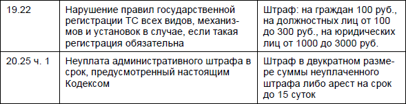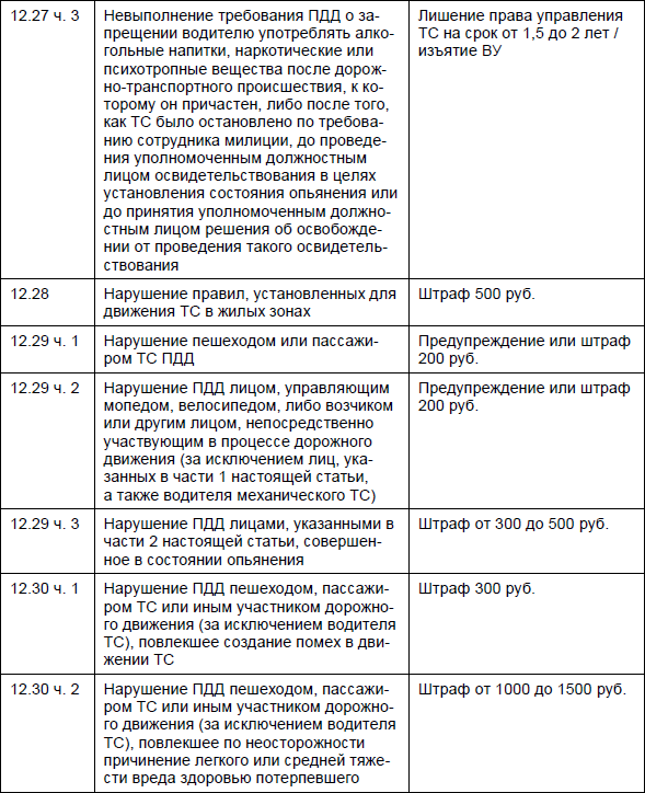 Приложение 8 Административная ответственность за нарушение ПДД (таблица штрафов)