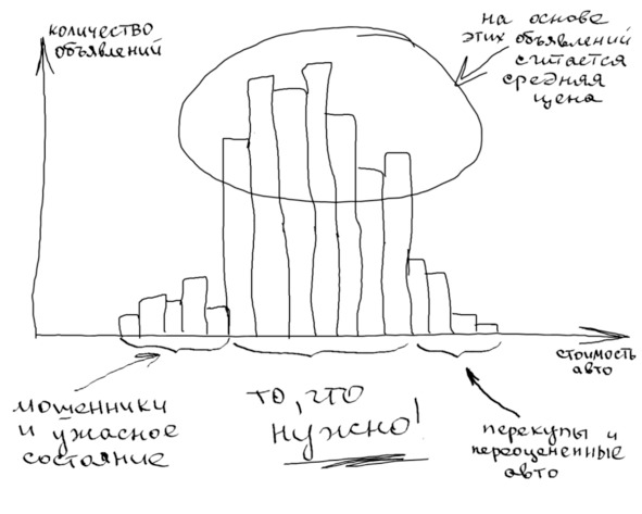 Это не так. Посмотрите на среднюю цену (можете рассчитать её сами и воспользоваться интернетом – об этом ниже). Для нашего условного BMW она равна 850—900 тысяч рублей. Так что рассчитывать на покупку такой машины, имея на руках всего 700 000, не стоит. Даже несмотря на то, что в объявлениях будут встречаться экземпляры за 590 и 650 тысяч.