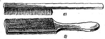 При чистке механизма часов применяют волосяные и металлические щетки (фиг. 14).