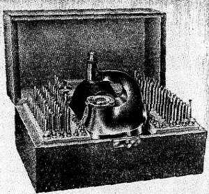 Механическое устройства (фиг. 18) сделало так, что при полном заводе ремень приспособления начинает проскальзывать. Такое приспособление легко изготовить в любой мастерской. Приводной ремень рекомендуется делать из резиновой ленты плоского или круглого сечения.