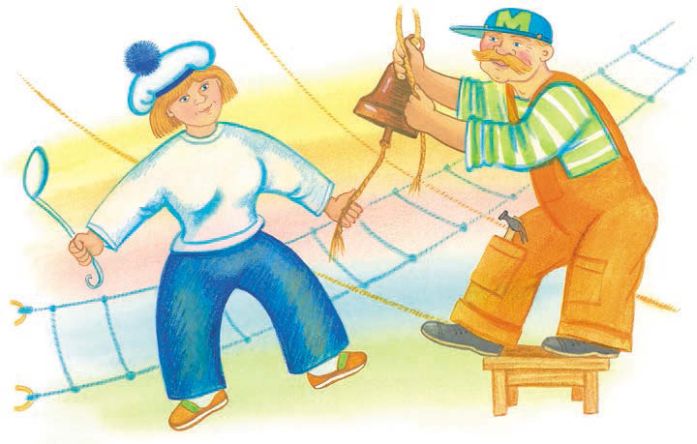 – Подожди, – ответил папа; он стоял на табуретке и подвешивал к потолку старый колокольчик. – Видишь ли, я хочу, чтобы моим детям жилось так же весело, как всем остальным. И я подумал, что ведь и правда мы ни разу не устраивали для детей детского праздника. Послушай, мать, не хочешь ли ты сегодня быть матросом? А я буду капитаном.