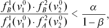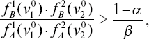 Пусть при обследовании субъекта S были получены признаки v10, v20,…, Vn0 (они приведены здесь в порядке их убывающей информативности). Пусть на основании здравого смысла выбраны допустимые вероятности ошибок ? и ?. Рассмотрим отношение вероятностей, соответствующих первому признаку:
