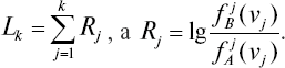 Итак, определение принадлежности векторов v (v1, v2, …, vn) к множеству {vA} или {vB} осуществляется следующим образом. Последовательно вычисляются величины L1, L2, …, Lk, где