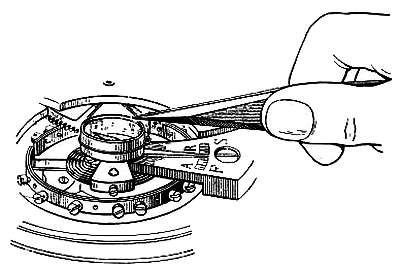 Если часы намагничены, то стрелка будет колебаться, следуя за колебаниями баланса, делая иногда полный оборот или даже вращаясь с некоторой скоростью. Если стрелка остается неподвижной, это еще не означает, что механизм часов не намагничен; стрелка компаса могла залипнуть на своей оси. Слегка постучите пинцетом по компасу и, если он не придет в действие, медленно поверните механизм часов, удерживая его в горизонтальном положении.